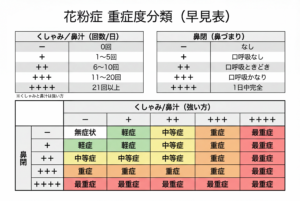 ゾレアはアレルギー反応の引き金となる「IgE抗体」をブロックする保険適応の薬です。他の薬剤と異なり、既存の治療では十分な効果が得られない患者さんなど、重症以上の花粉症患者さんを対象に使用される注射薬です。 花粉症の重症度分類は、”鼻閉”と“くしゃみ発作または鼻漏”の度合いと回数で決まります。1日中鼻が詰まって苦しい状態や、1日に21回以上くしゃみや鼻水が続く場合は最重症に分類され、ゾレアの使用を検討する目安となります。ゾレアの投与頻度は2週間または4週間に1回で、患者さんの血液検査の結果(血清中総IgE濃度)と体重に合わせて投与量を変更します。 高価な製剤であり、3割負担の方で約4000円~50000円の自己負担となります。花粉症の場合には約6000円~20000円程度の自己負担の方が多いですが、体重や採血結果によって変動があります。 ※ゾレアは自己注射が可能な製剤もありますが、花粉症に対するゾレアの投与は医療機関での注射が必要になります。